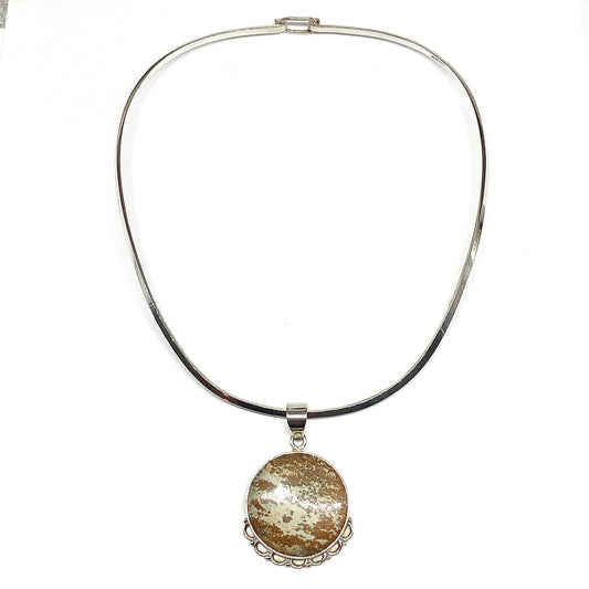 Sterling Silver Oval Brown Picture Jasper Stone Pendant
