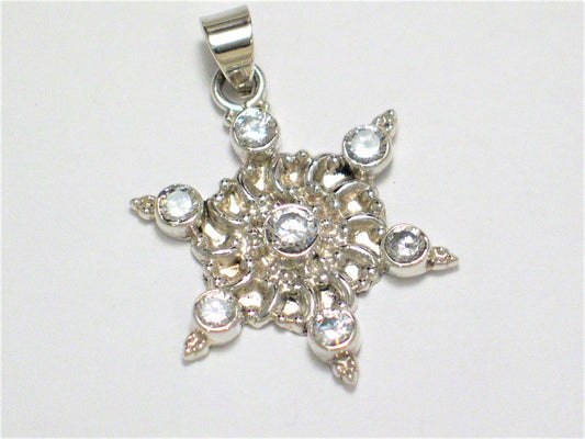 Sterling Silver Pendant, Unique Glittering Cubic Zirconia Stone Star Pendant