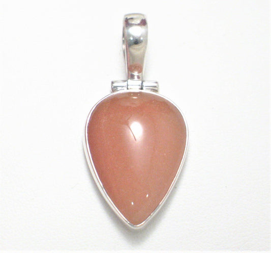 Sterling Silver Pendant, Unique Frosty Grapefruit Color Aventurine Stone Teardrop Pendant