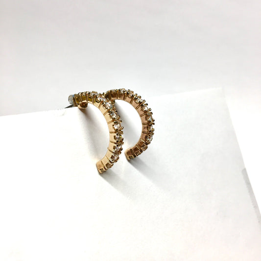 Stud Earrings, Shimmery Cz Heart & Billowy Plume Design 14k Gold Earrings