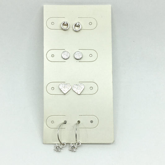 4pr Assorted Petite Silver Random Design Stud & Hoop Earrings