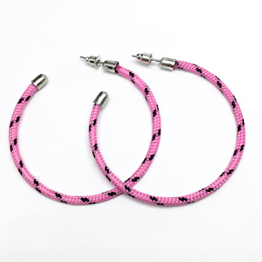 90s Pink Black Friendship Bracelet Style Hoop Earrings