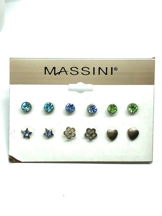 6 Pair Bundle Assorted Blue Green Crystal Stud Earrings
