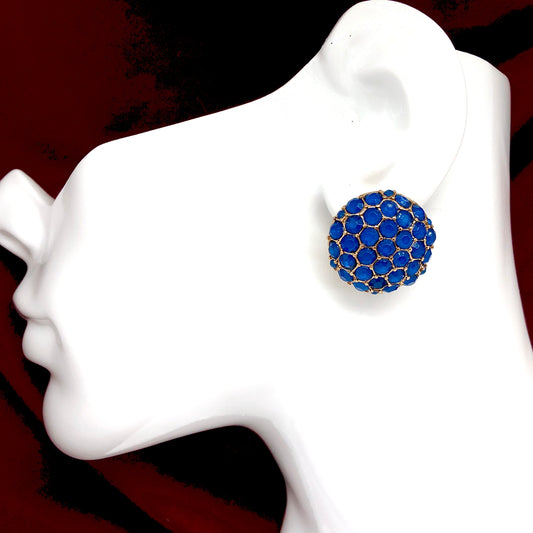 Beautiful Gold & Blue Honeycombed Dome Style Earrings