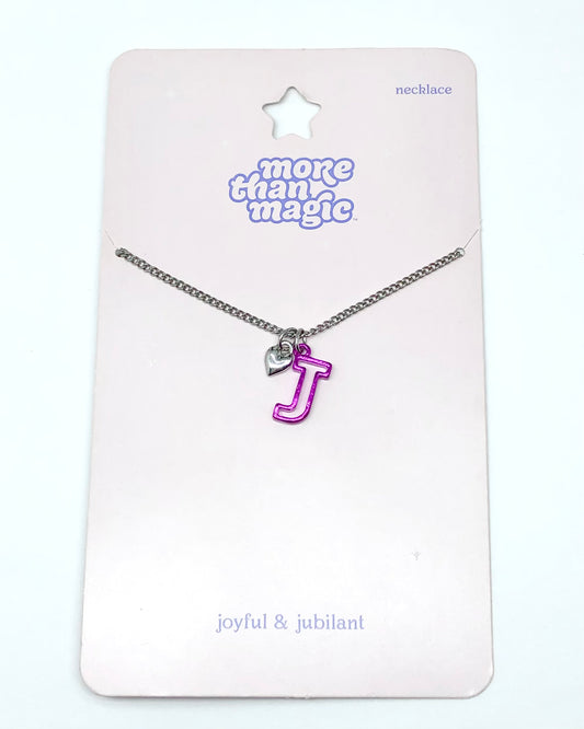 Girls Inspirational Letter Initial J Necklace + Heart Charm - Adjustable