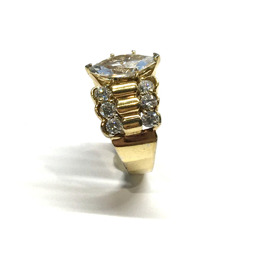 Perfectly Imperfect | Gold Sterling Silver Wide Watchband Style Marquise Cz Ring - sz 6.5