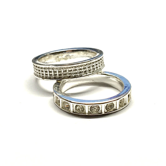 Set of 2 Silvery Shimmery Rhinestone Stacking Ring Bands sz 8