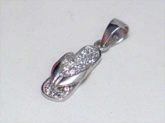 Pendant, Mens Womens Shimmery Pave Cz Sterling Silver Flip-flop Pendant