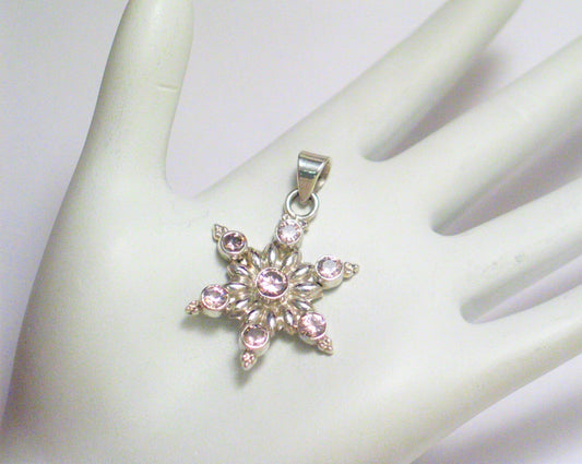Pendant, Sterling Silver Shimmery Pink Cz Stone Star Pendant