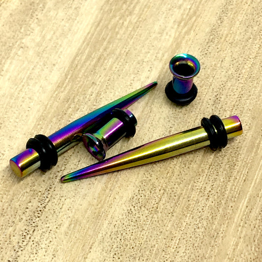 Stainless Steel Gauges 4mm / 6g Tapers & Plug set Rainbow Slick Design | ASTM F 138