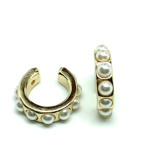 3 Assorted 2 Gold & Pearl, 1 Plain Polished Design Ear Cuffs - Sugarfix