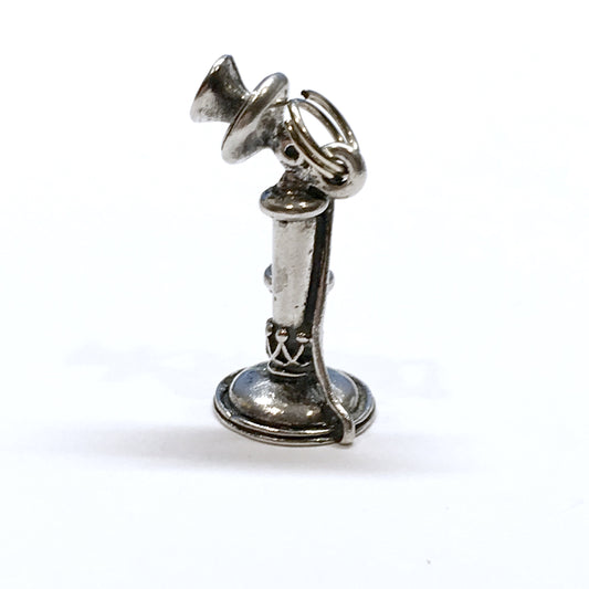 Vintage 3D Sterling Silver Antique Hand Crank Wall Phone Charm