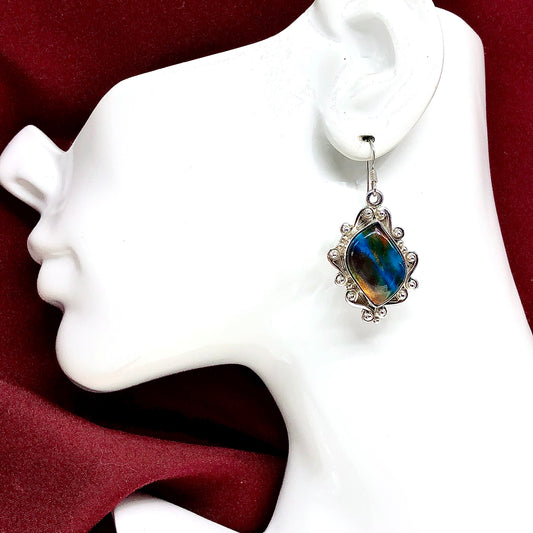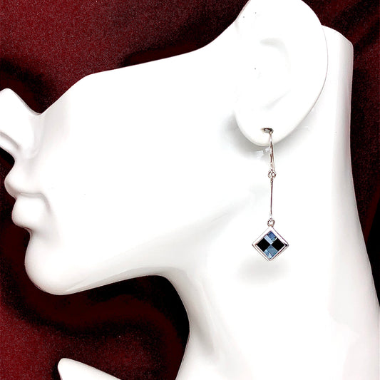 Large Colorful Blue Marquise Design Sterling Silver Dangle Earrings