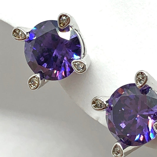 Fancy 8mm Amethyst Purple Zirconia Sterling Silver Stud Earrings