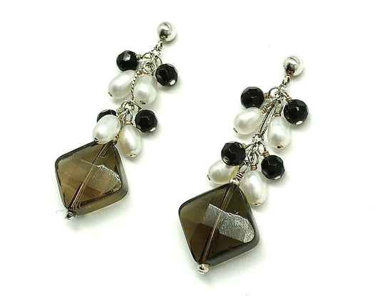 Smoky Quartz Pearl Sterling Silver Dangle Earrings