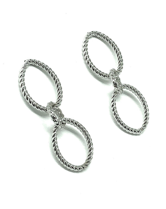 Rope Design Sterling Silver Triple Hoop Dangle Earrings