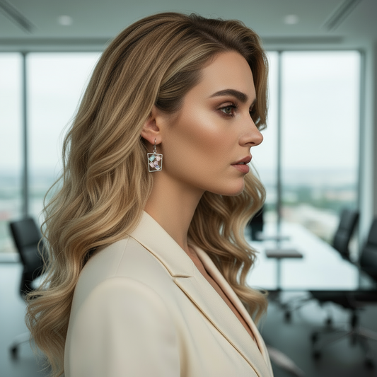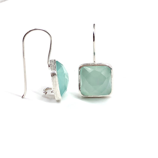 Rose cut Chalcedony Stone Square Drop Sterling Silver Earrings