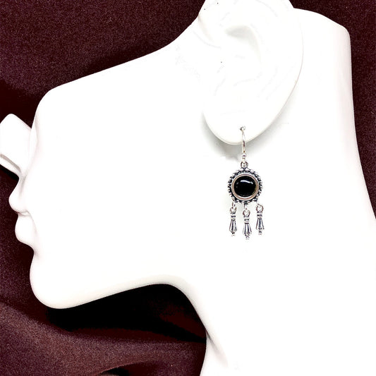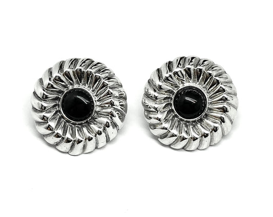 Fancy Black Round Bundt-pan Style Short Drop Earrings