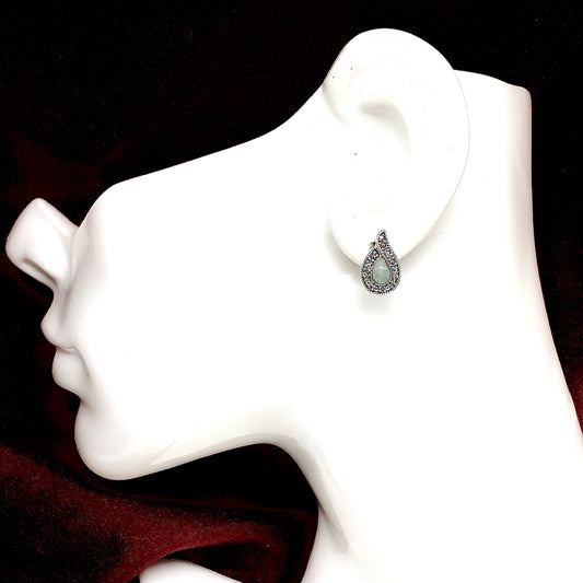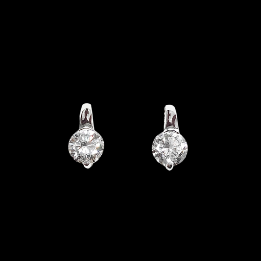 Single Stone Short Drop Style Sterling Silver Stud Earrings