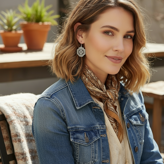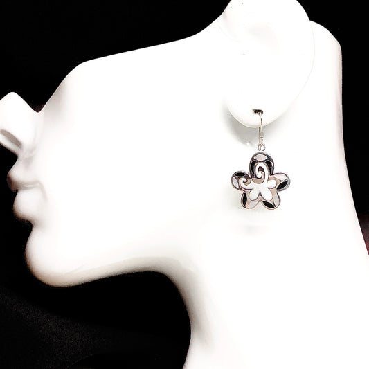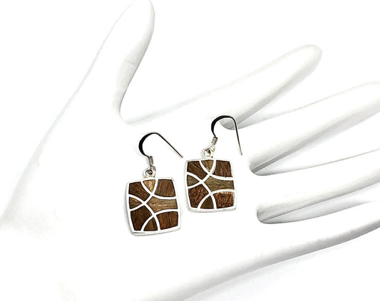Sterling Silver Dangle Earrings with Bamboo Inlay