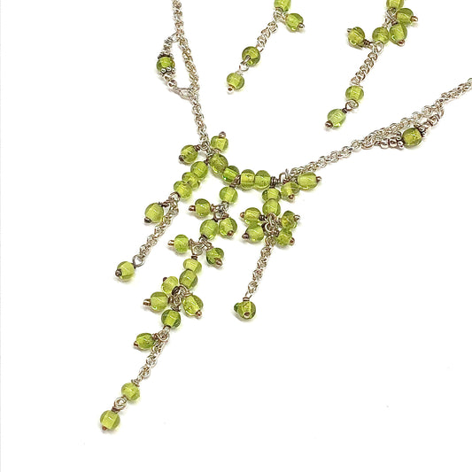 Matching Beaded Sterling Silver Necklace + Earrings set in Peridot Green