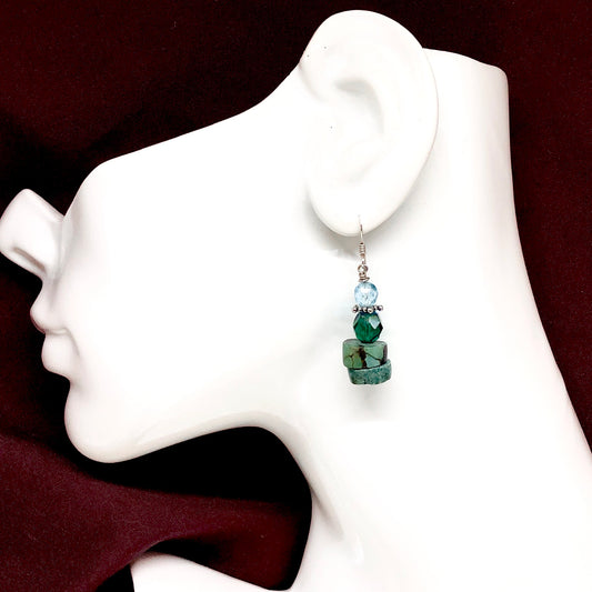 Sterling Silver Crystal Bead Turquoise Dangle Earrings