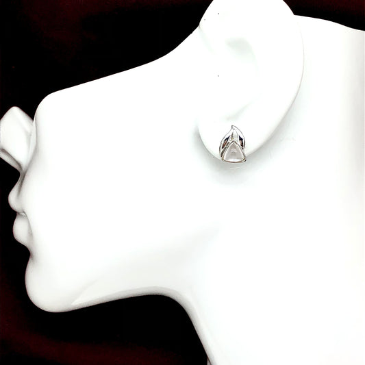 Edgy Trillion Design Sterling Silver Rose Quartz Stud Earrings