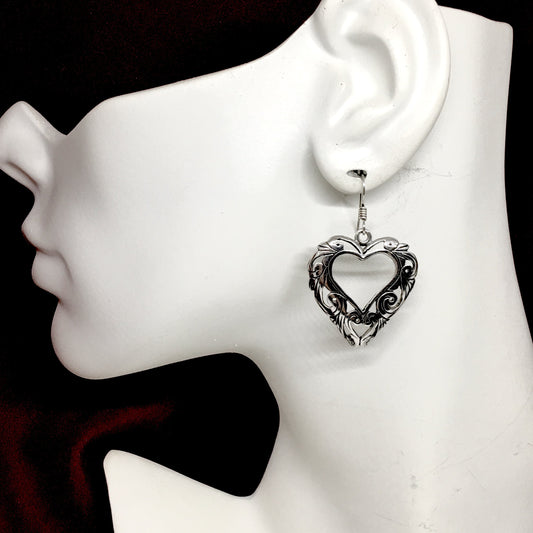 Large Sterling Silver Scrolling Heart Dangle Earrings