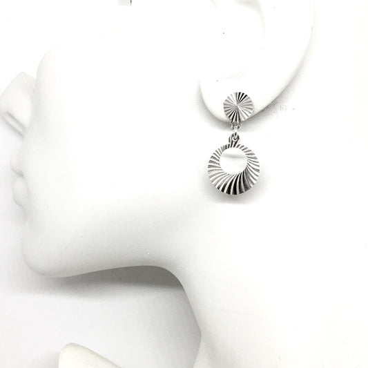 Radiating Shine Sterling Silver Etched Starburst Circle Dangle Earrings