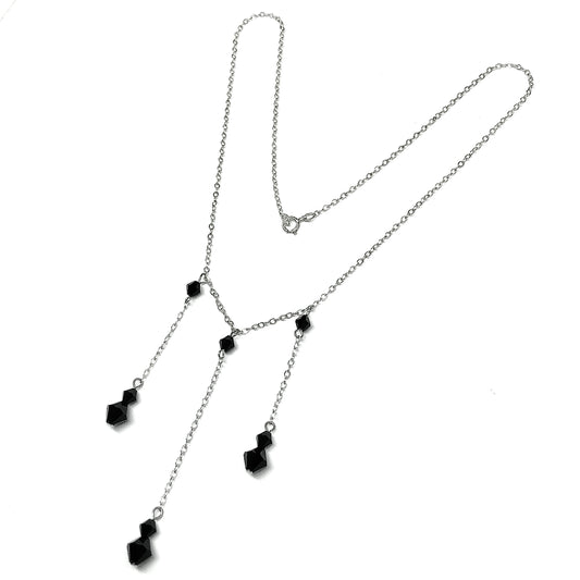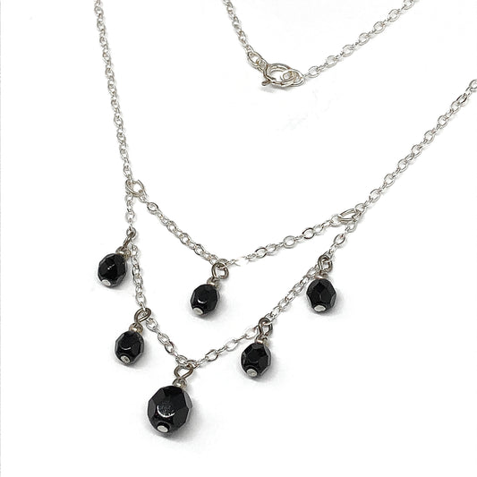 14.5" Sterling Silver Black Crystal Negligee Necklace