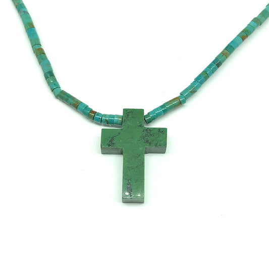 Sterling Silver Turquoise Tube Bead Cross Necklace