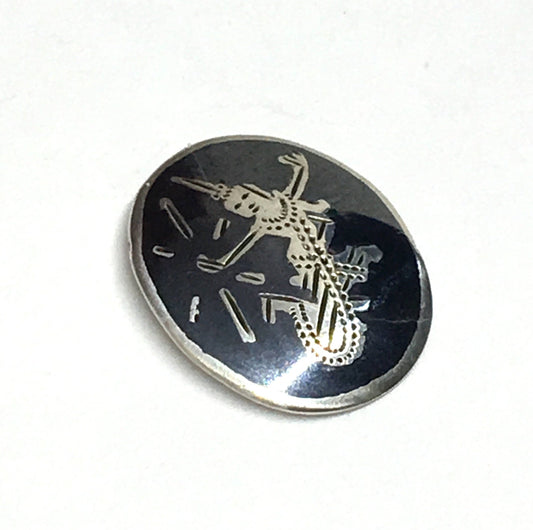 Mens Vintage Sterling Silver Black Niello Siam Goddess Tie Tack