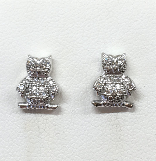 Stud Earrings - Mens Womens Shimmery Cz Wise Owl Sterling Silver Earrings