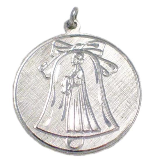Vintage Wedding Bell & Bride Sterling Silver Medallion Charm Pendant - Engraveable
