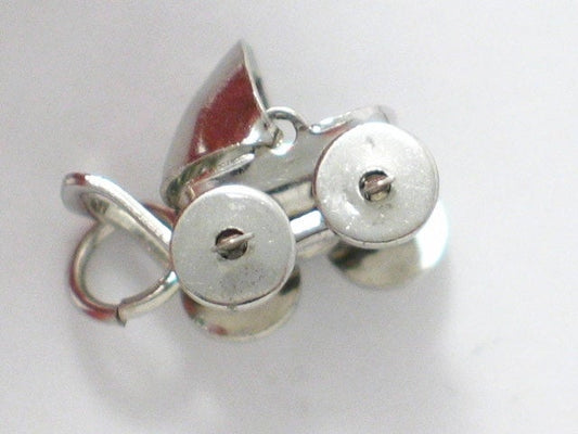 Vintage Mechanical Sterling Silver 3D Baby Stroller Charm