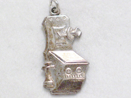 Vintage Sterling Silver 3D Phone Bracelet Charm / Pendant