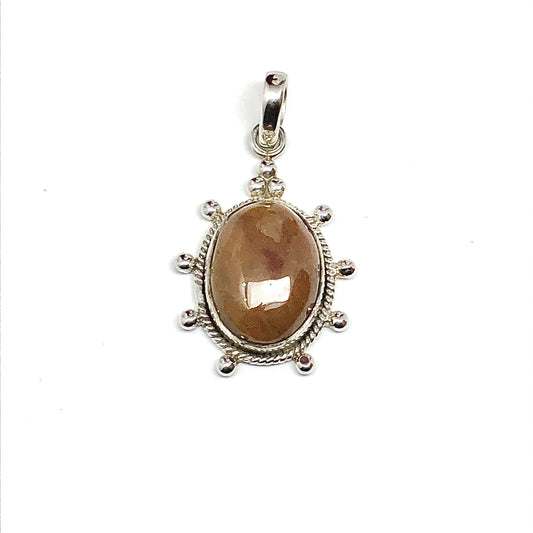 Unique Jasper & Copper Goldstone Stone Sterling Silver Pendant