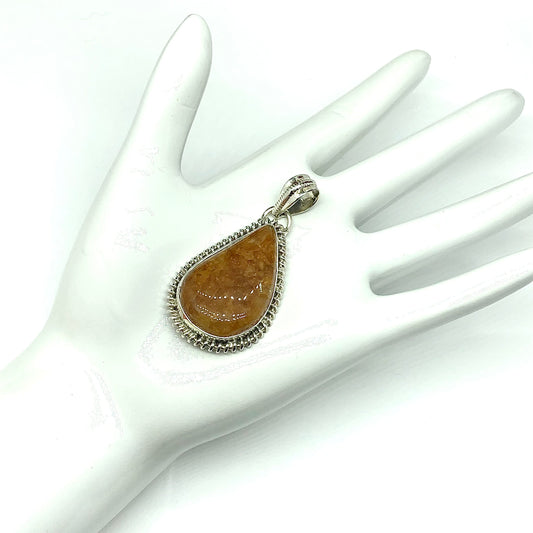 Big Golden Amber Quartz Stone Sterling Silver Pendant