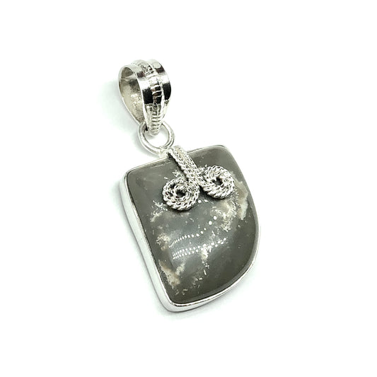 Neutral Tone Oval Banded Agate Stone Sterling Silver Pendant