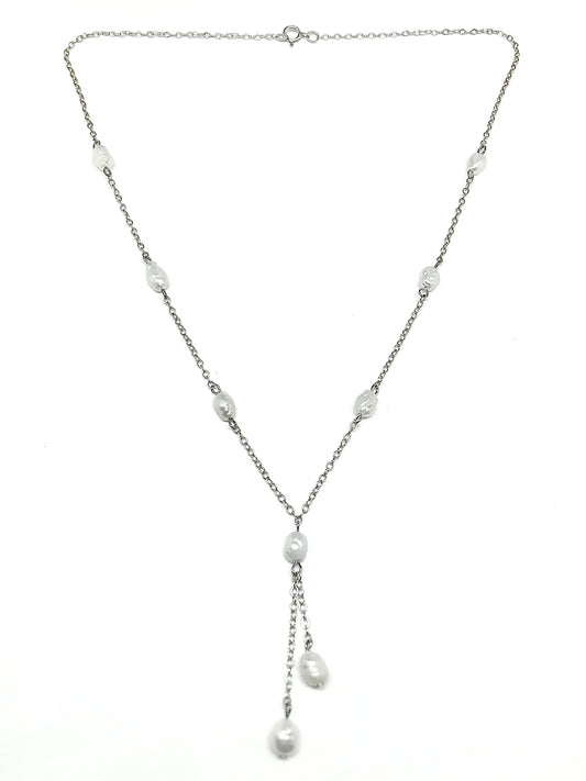 Elegant Pearl - 16.25" Sterling Silver Satellite Y-chain Tassel Necklace