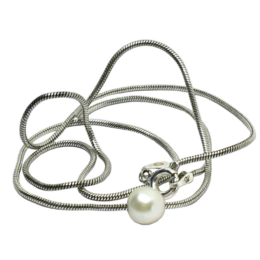 Elegant 18" Sterling Silver Sliding Pearl Snake Chain Necklace
