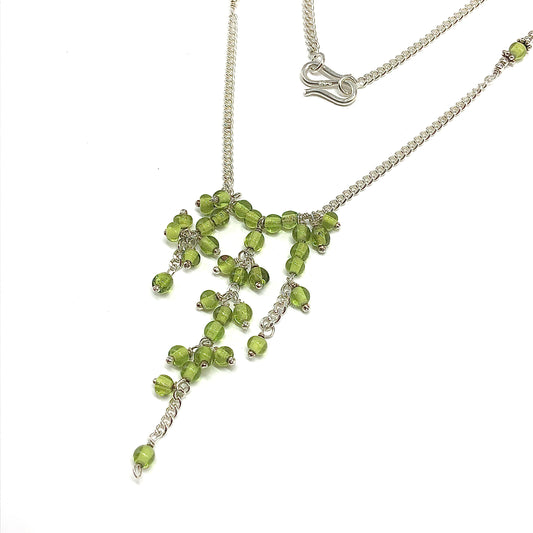 18 in Peridot Green Beaded Sterling Silver Tassel Necklace