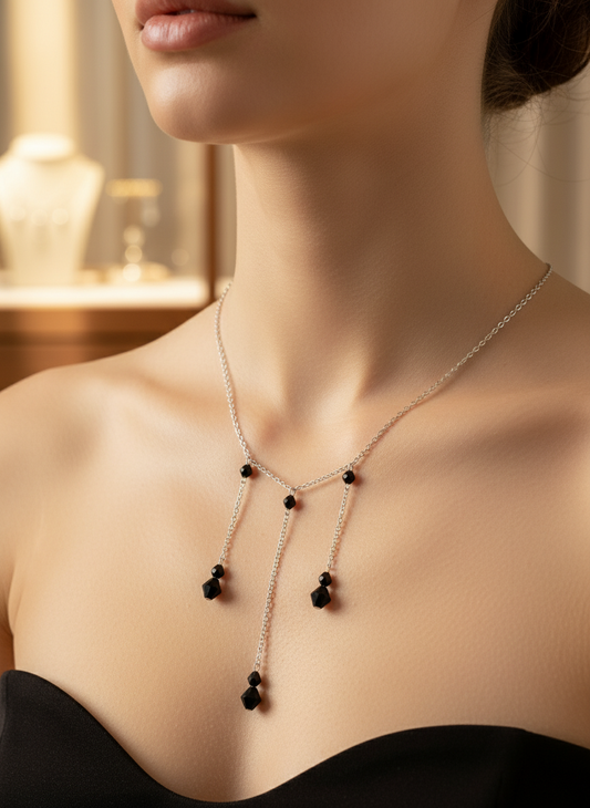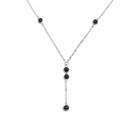 Stylish 16in Sterling Silver Black Bead Station Y Chain Necklace