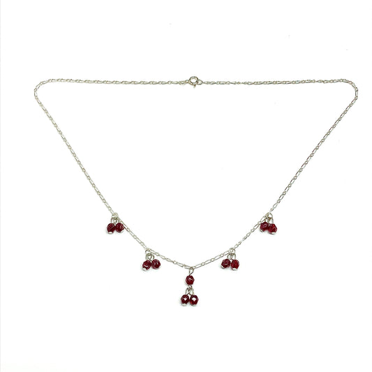 16in Deep Red Crystal Sterling Silver Festoon Necklace