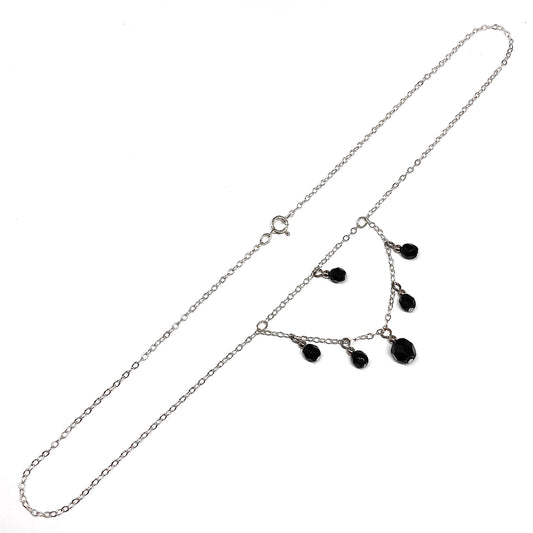 Victorian Style 15in Sterling Silver Black Beaded Negligee Necklace