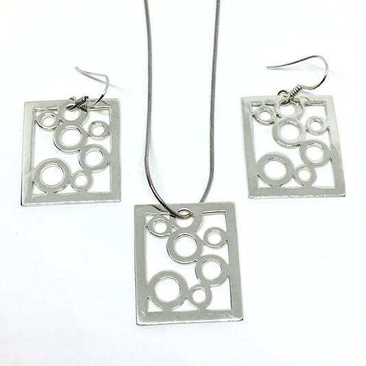 Artsy Circle Design Sterling Silver Pendant Necklace + Earrings set