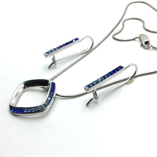 Blue Ombre Crystal Sterling Silver Earrings + Pendant Necklace Set