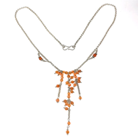 17.5" Sterling Silver Ikura Orange Carnelian Stone Tassel Necklace