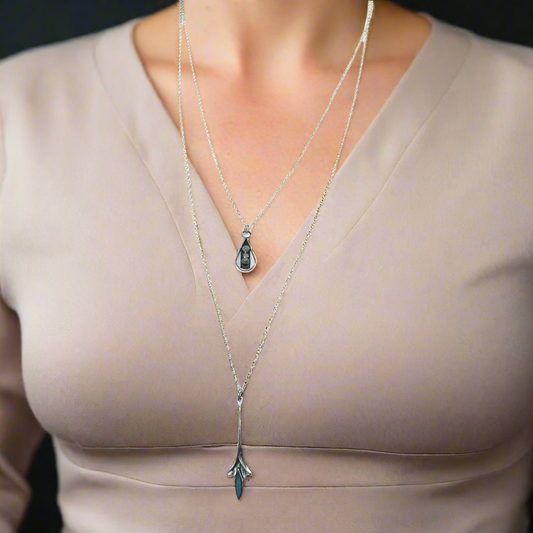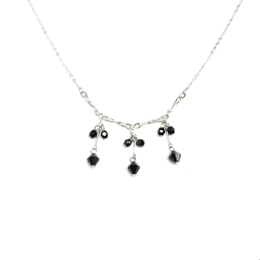 14.5" Sterling Silver Black Crystal Negligee Necklace