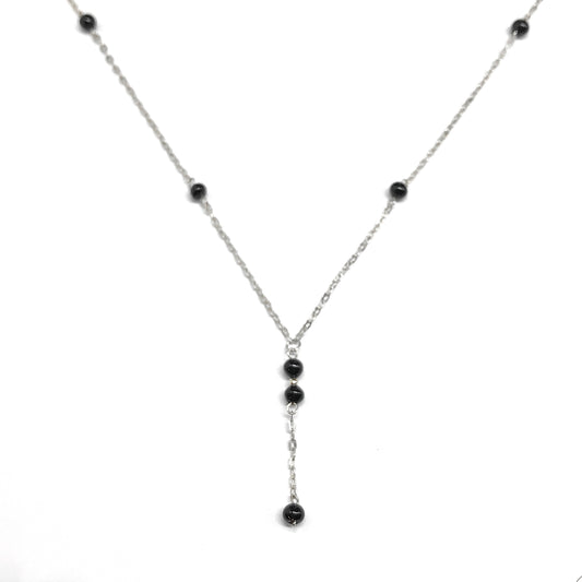 17.75in Sterling Silver Black Beaded Lariat Necklace